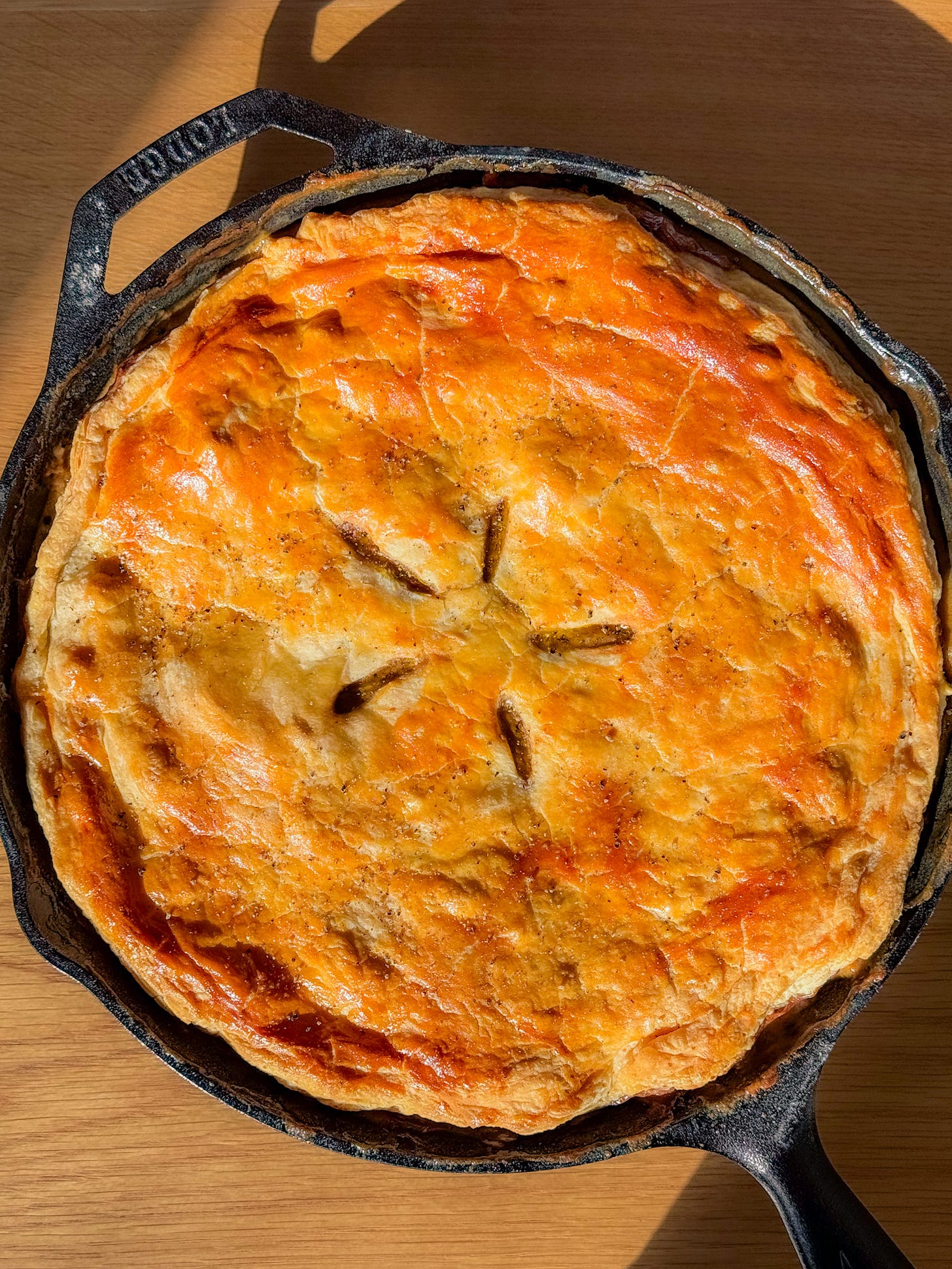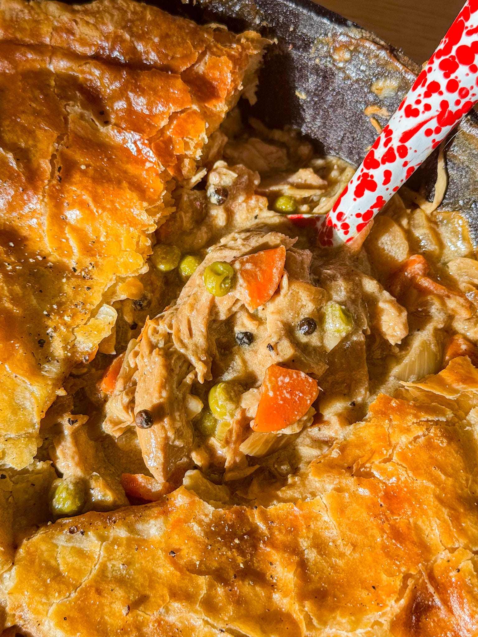 I wanted this to be as easy as possible (because love isn’t always), so for the meat we landed on shredding up a rotisserie chicken. And if that wasn’t enough to sell you, we finish it off with a crust of frozen puff pastry, because if my lover saw me have a breakdown trying to make it from scratch, he’d probably no longer be my lover.
